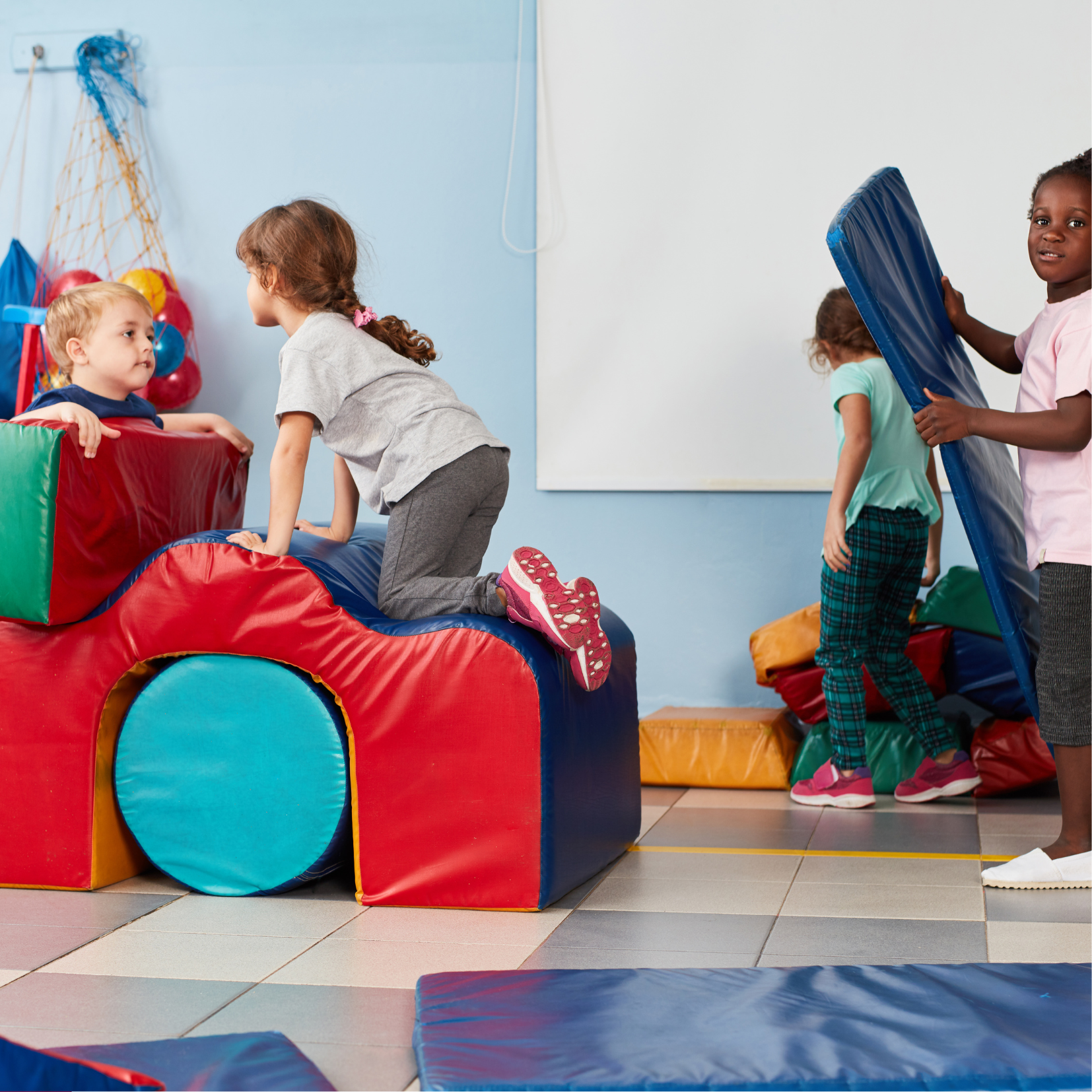 Parents participate with their toddlers, exploring movement through music, games, and circuits.